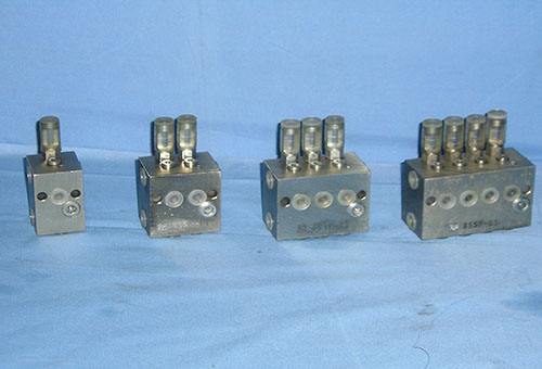 雙線式分配器是雙線式集中潤滑系統(tǒng)的核心元件,在兩條供油管交替的供油壓力作用下動作,完成潤滑劑的計量和向各個潤滑點(diǎn)分配潤滑劑的功能。