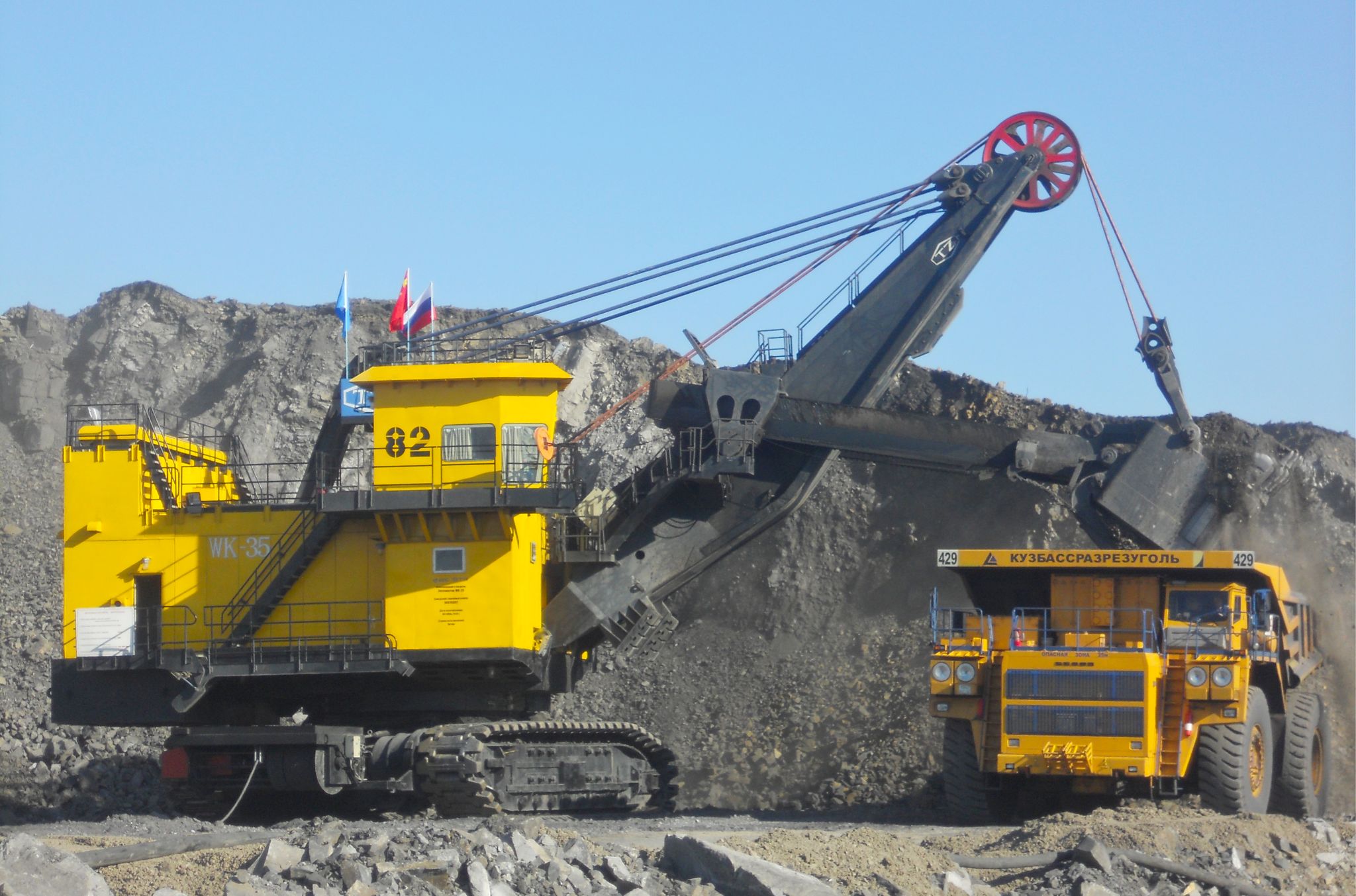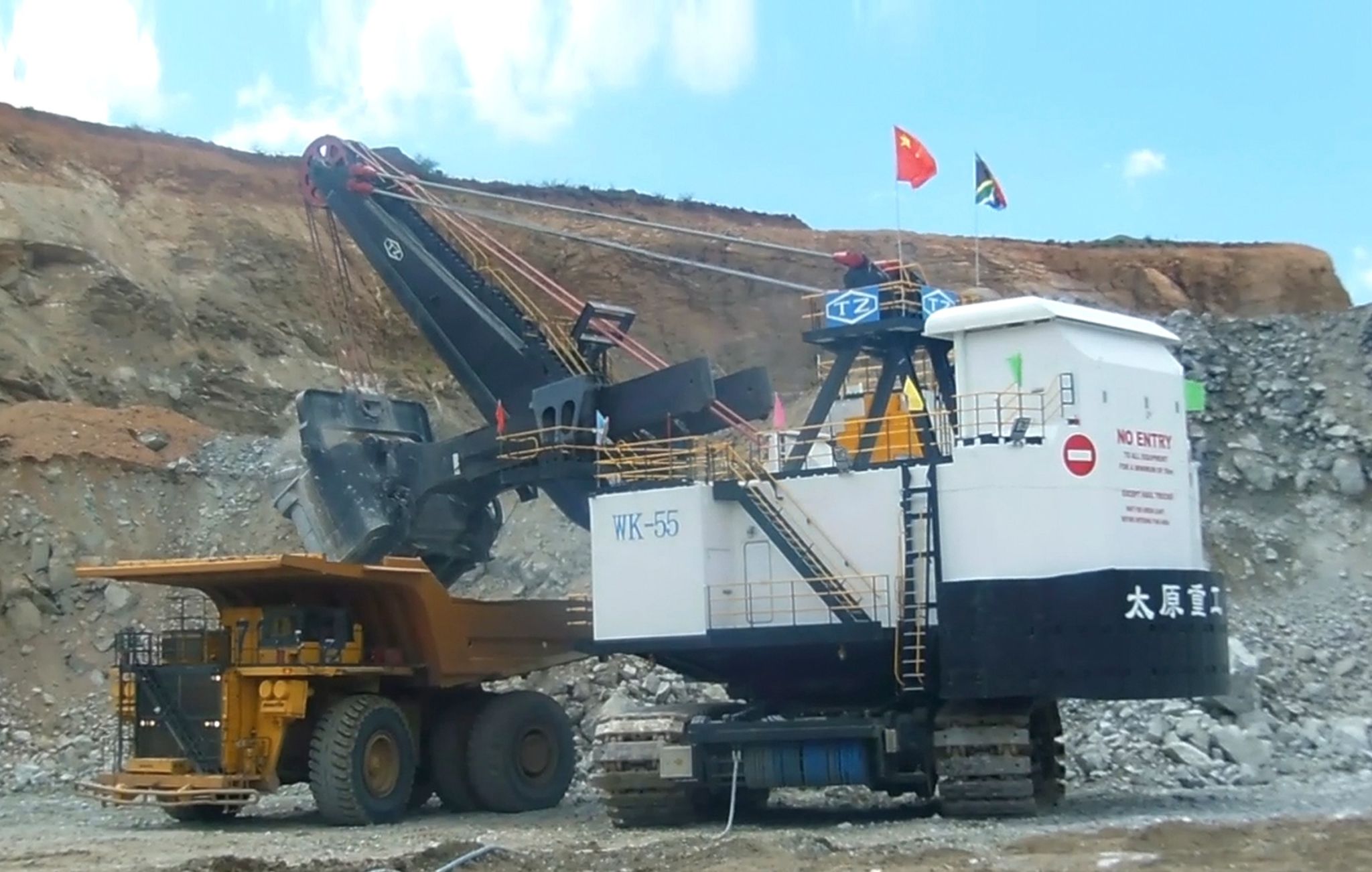 WK系列礦用機(jī)械正鏟式挖掘機(jī),標(biāo)準(zhǔn)斗容4m3~75m3,已生產(chǎn)1400余臺(tái),廣泛應(yīng)用于大型露天煤礦、鐵礦及有色金屬礦山的剝離和采裝作業(yè),數(shù)十臺(tái)產(chǎn)品出口到10余個(gè)國(guó)家。